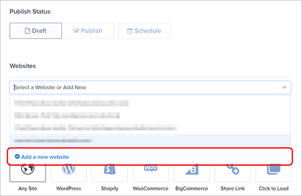 Click on the dropdown menu labeled Select a Website or Add New. If you’re brand new to OptinMonster, you won’t see any websites listed. Click on Add a new website.