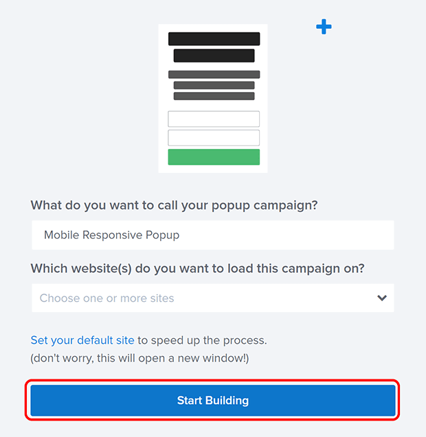 Give your campaign a name. Don’t worry about adding it to your website yet, we’ll do that later. Click on Start Building when you’re ready!